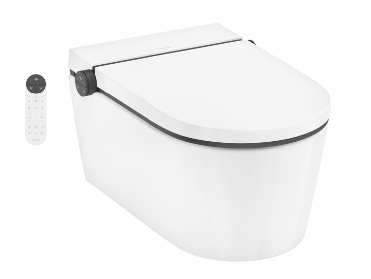 Består af: douchetoilet, toiletsæde og låg, fjernbetjening, lydisolerende måtte